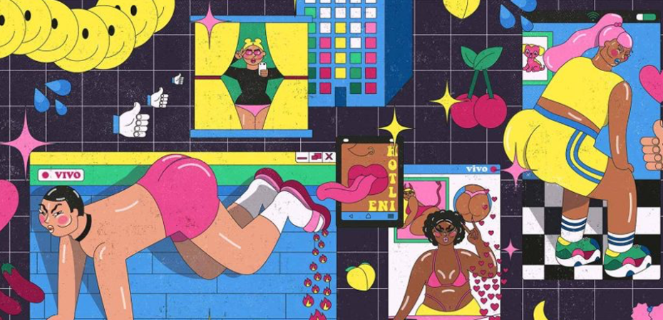 Peitos, bundas, mamilos, troncos sem cabeça. Alguns vestidos, outros nus. Chapéus, bandeiras e bandanas. Uma mina vestida de animal print dança com seu cachorro enquanto um casal faz ménage com um dinossauro de pelúcia verde-fluorescente. Um careca pega no sono com seus fones de ouvido ligados. Uma morena linda puxa a camiseta e a transforma num top — e até se pode distinguir as gotas de suor que se bifurcam na altura do seu umbigo: parece esculpido em chocolate. Ou talvez sejam os pixels de uma webcam vagabunda. O balcão, mais livre que nunca, se ilumina com o veneno que cada um pode conseguir no mercadinho da esquina: cerveja, fernet, algum vinho barato. Os mais sofisticados enchem suas taças cocktail com bebida colorida. Ao fundo, luzes intermitentes, paisagens psicodélicas e até a cara do presidente Alberto Fernandez, com seu tranquilo sorriso. Parece que vale tudo. Se em alguma coisa esses mundos diferentes se coincidem, é no movimento ondulante de suas cadeiras ao ritmo de um mesmo beat, entre a necessidade pulsante de contato com outros, inclusive quando isso signifique expor a intimidade de seus universos privados diante de desconhecidos. Em tempos de covid-19, essa distinção se torna utópica.