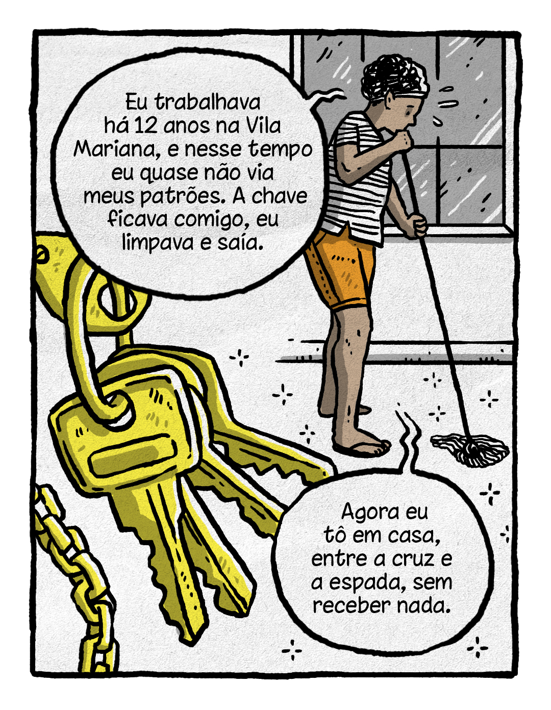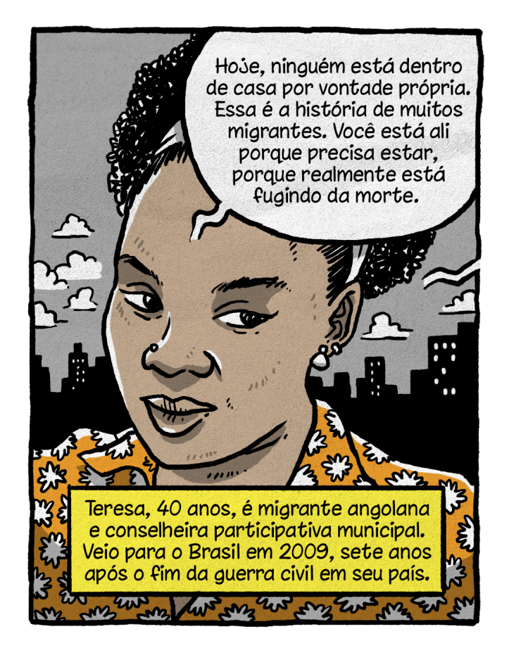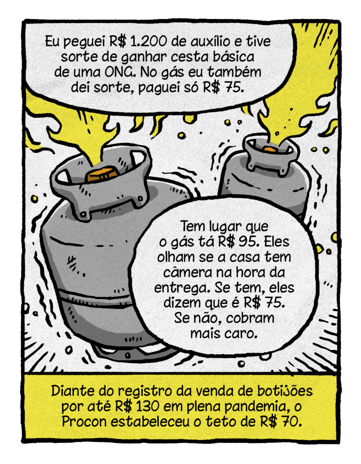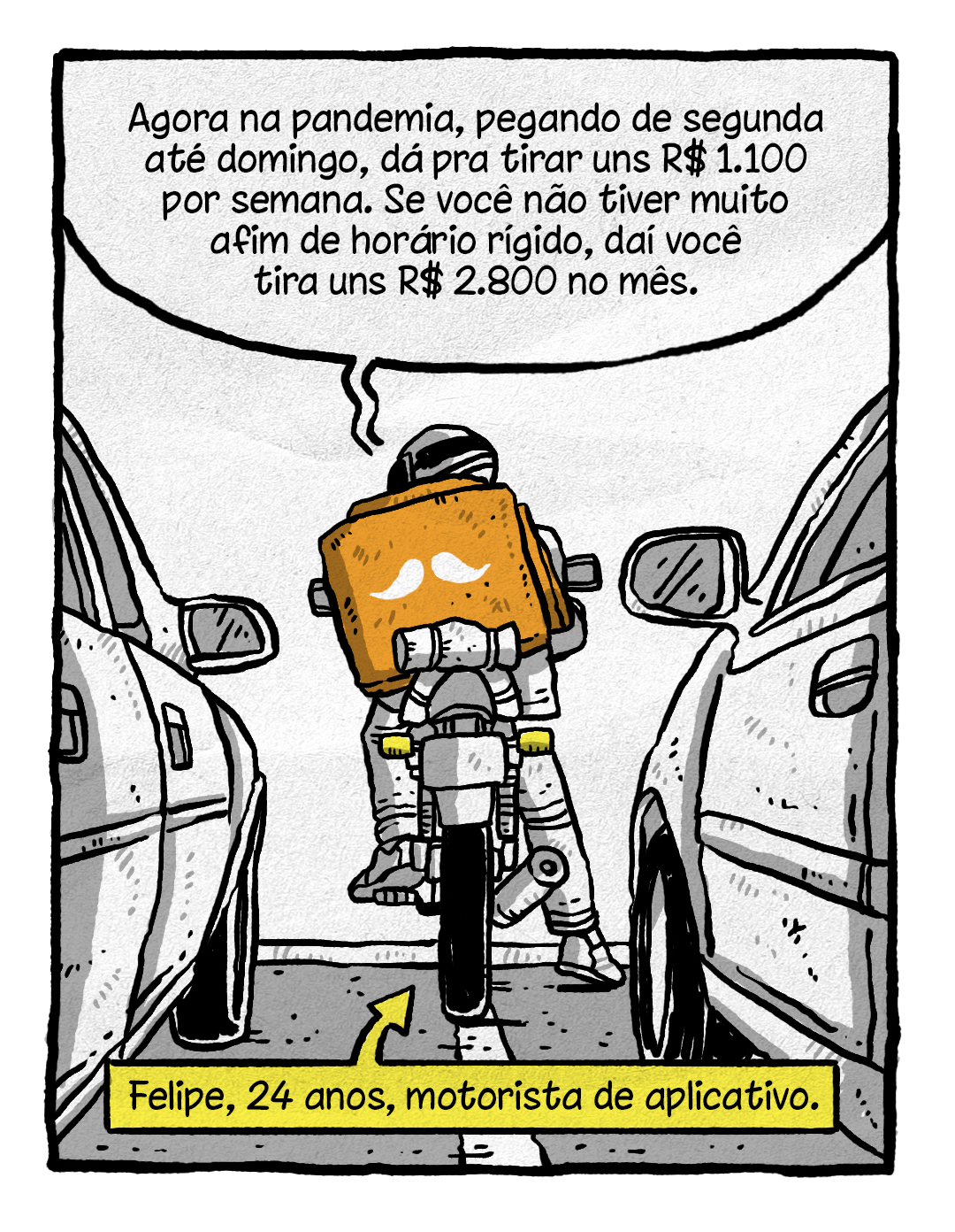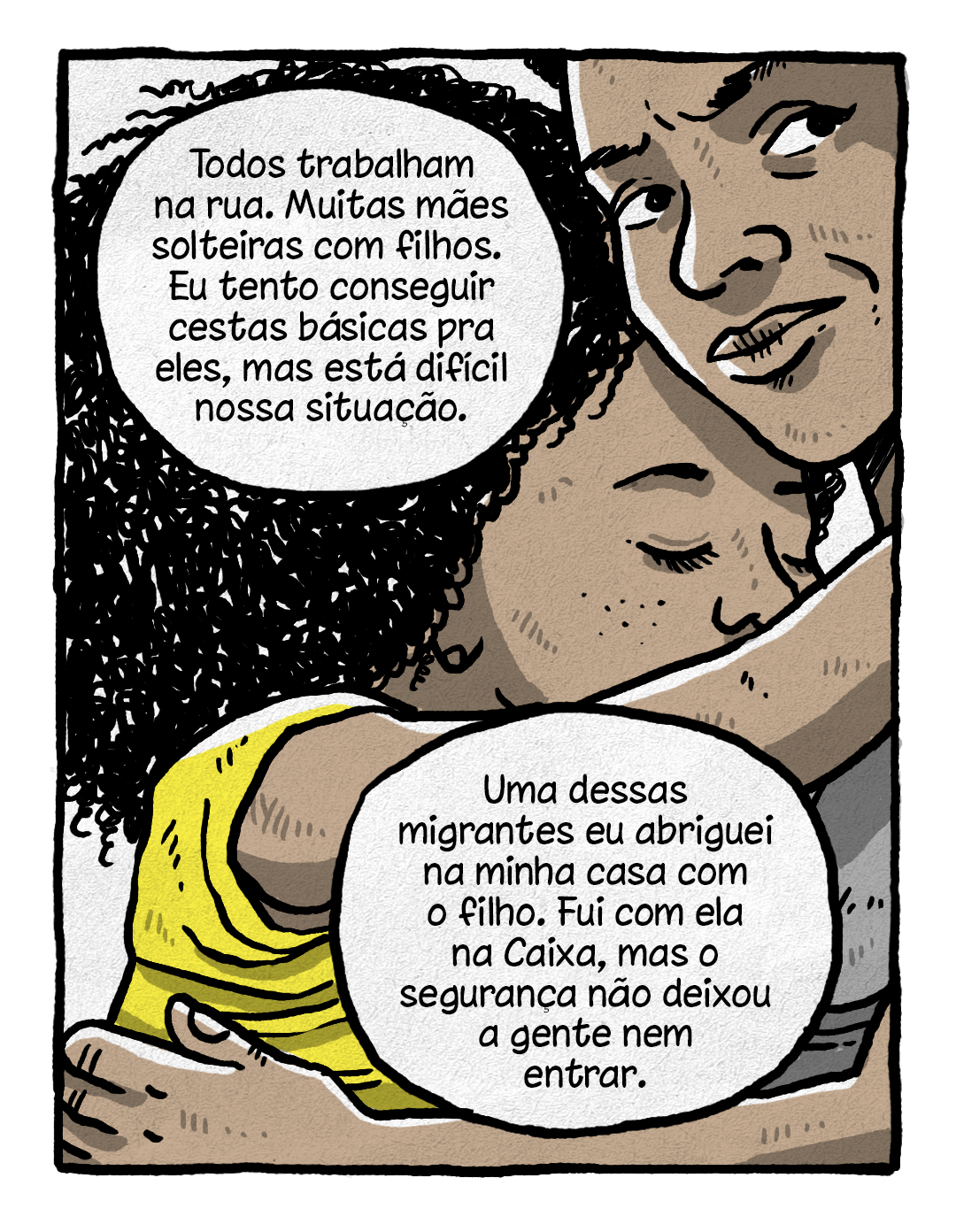 As consequências da pandemia de coronavírus atingem de forma desigual as diversas camadas da sociedade brasileira. Esse é o tema da reportagem em quadrinhos “O País Não Pode Parar”, que relaciona a forma como cada classe é atingida e sua reação à crise. Enquanto uns lutam para sobreviver, outros esperam a comida chegar até a porta de casa, de onde exigem a “volta ao trabalho”. A compreensão da crise aqui é aprofundada com dados e números que começam a mostrar a dimensão do que está acontecendo no Brasil. Em um cenário caótico de crise sanitária e omissão do governo, a reportagem traz a voz de imigrantes, trabalhadores de aplicativos e empregadas domésticas. Esse trabalho é mais uma parceria entre o jornalista Guilherme Weimann e o cartunista Vitor Teixeira. Os autores já publicaram diversos trabalhos juntos, como “O Inimigo da Vez” e “Tragédia Anunciada“.