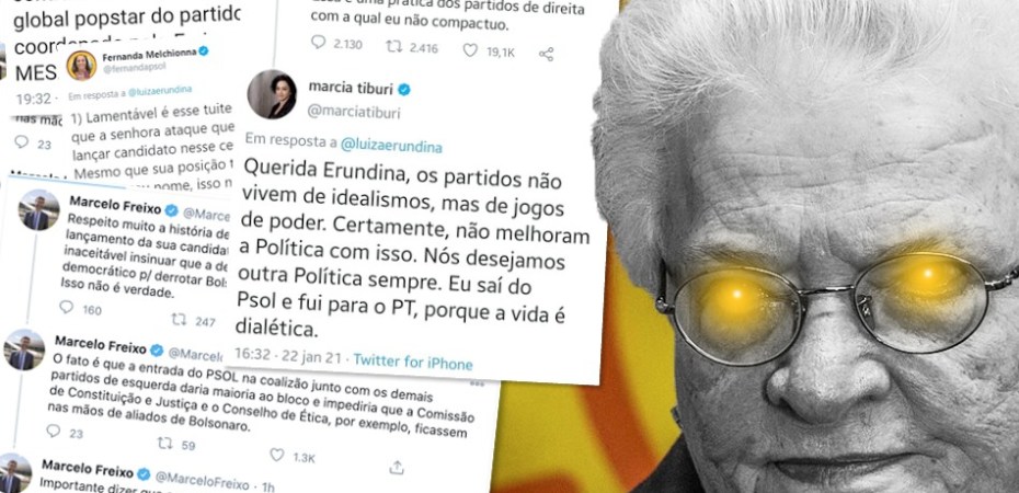 Em uma publicação no Twitter, Luiza Erundina criticou uma ala do seu partido, o PSOL. Segundo ela, alguns deputados da legenda estariam aderindo ao fisiologismo e à barganha por cargos. A publicação foi feita na sexta-feira (22) e já gerou um burburinho sobre um possível racha.