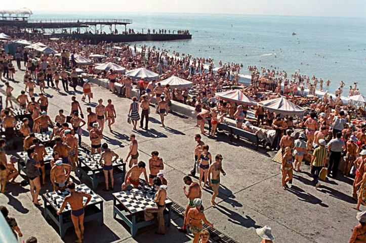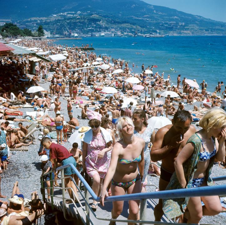 As praias soviéticas estavam quase sempre lotadas no verão e era preciso chegar cedo para encontrar um bom lugar. Também eram equipadas com quiosques, cafés, cantinas e restaurantes públicos, mas boa parte dos banhistas preferia levar lanches prontos para evitar filas. Passavam horas tomando banhos de sol e de mar, jogando xadrez, praticando atividades físicas ou passeando de caiaque. Os grandes centros urbanos ofereciam também opções de lazer para os que não podiam ou não queriam viajar até os destinos mais badalados. Os moscovitas costumavam frequentar a Represa de Istra para nadar e relaxar. Já em São Petersburgo, o principal destino dos banhistas era a praia situada junto à Fortaleza de São Pedro e São Paulo.