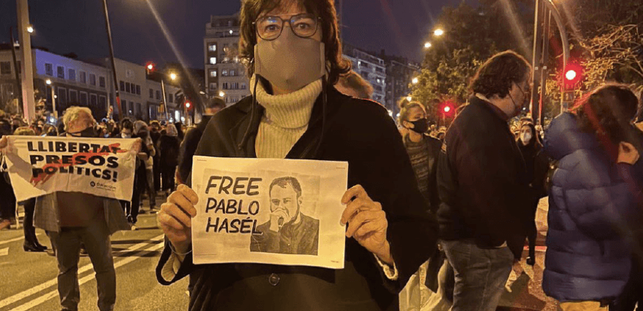 Na noite desta terça-feira (16), em Barcelona, capital da Catalunha, cerca de 5 mil pessoas se juntaram ao protesto contra a detenção do rapper Pablo Hasél. O músico foi preso de manhã na Universidade de Lérida, a 150km de Barcelona, levado pela polícia para cumprir uma pena de nove meses de cadeia por ter criticado o rei emérito da Espanha, Juan Carlos, e colocar referências a grupos armados em suas letras (o que o tribunal considerou “glorificar o terrorismo”). Sua prisão provocou protestos também em Lérida, Girona, Valência. Em Barcelona, por volta das 7 horas da noite no horário local, mil pessoas já se concentravam na Praça Lesseps para a manifestação, em meio a palavras de ordem como “liberdade para Pablo Hasél!” e “Viva a Catalunha antifascista”.