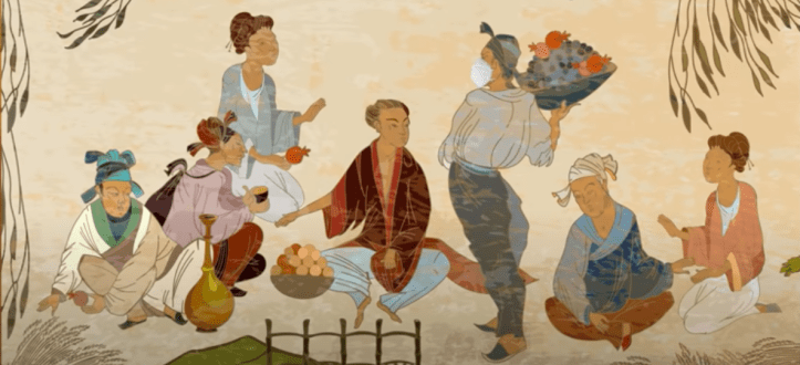 Na China antiga, o uso da máscara já se fazia presente em algumas ocasiões. Relatos de Marco Polo, do século 13, contam que o imperador chinês fazia com que seus servos usassem um pano no rosto, para não contaminar de alguma forma a comida ou alterar seu sabor.