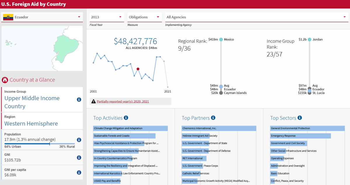 Como principal parceira da USAID no Equador, a Chemonics recebeu um contrato de US $11 milhões somente em 2013, ultrapassando substancialmente outros contratantes, com o objetivo de financiar iniciativas de “proteção ambiental”. Quando as operações de mudança de regime do “Escritório de Iniciativas de Transição” da USAID na Venezuela e na Bolívia foram reveladas, o governo de Correa congelou as relações com a USAID, em dezembro de 2013, e depois expulsou a agência em 2014. Porém, a USAID renovou suas atividades no Equador, alcançando uma influência máxima em 2018, quando o sucessor de Correa, Lenín Moreno, deu uma guinada brusca para a direita e se aliou a Washington.