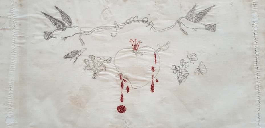 Uma das toalhas de João Cândido chama-se “O Adeus do Marujo”. A peça foi bordada após a morte de Francisco Dias Martins, um dos líderes da revolta ocorrida em 1910 que morreu na prisão vítima de sufocamento pela cal deixada pelo comandante Marques da Rocha por toda a cela. Dos dezessete revoltosos submetidos a essas condições, apenas João Cândido e João Avelino sobreviveram. Abaixo do desenho de uma âncora lê-se “liberdade” e a data em que foi deflagrada a revolta. A outra toalha bordada pelo Almirante Negro apresenta o coração sangrando.