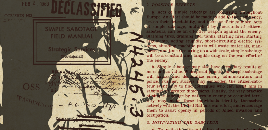 Pode ser que nosso zeloso autor da “questão de ordem” tenha agido como um sabotador – ainda que de modo involuntário. Isso é algo do que aprendemos ao consultar um Manual de campo de sabotagem simples editado em 1944 pela Central Intelligence Agency [Agência Central de Inteligência] (CIA), aberto ao público em 2008. Segundo consta em sua introdução, o objetivo do documento é “caracterizar a sabotagem simples, ressaltando seus efeitos possíveis e apresentando sugestões para estimulá-la e levá-la a cabo”.