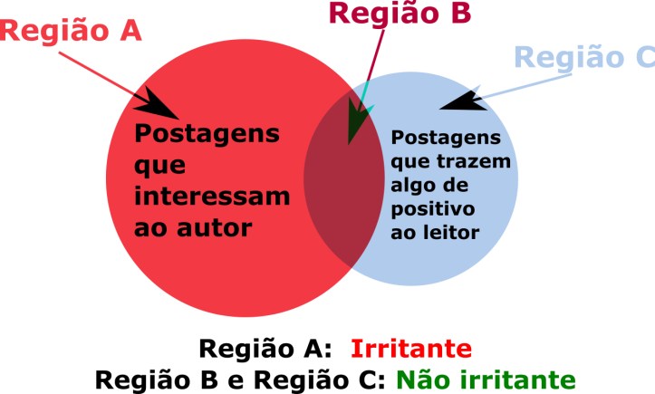 Uma postagem em redes sociais é irritante se interessa primariamente ao autor e não traz nada positivo para qualquer um que a leia.