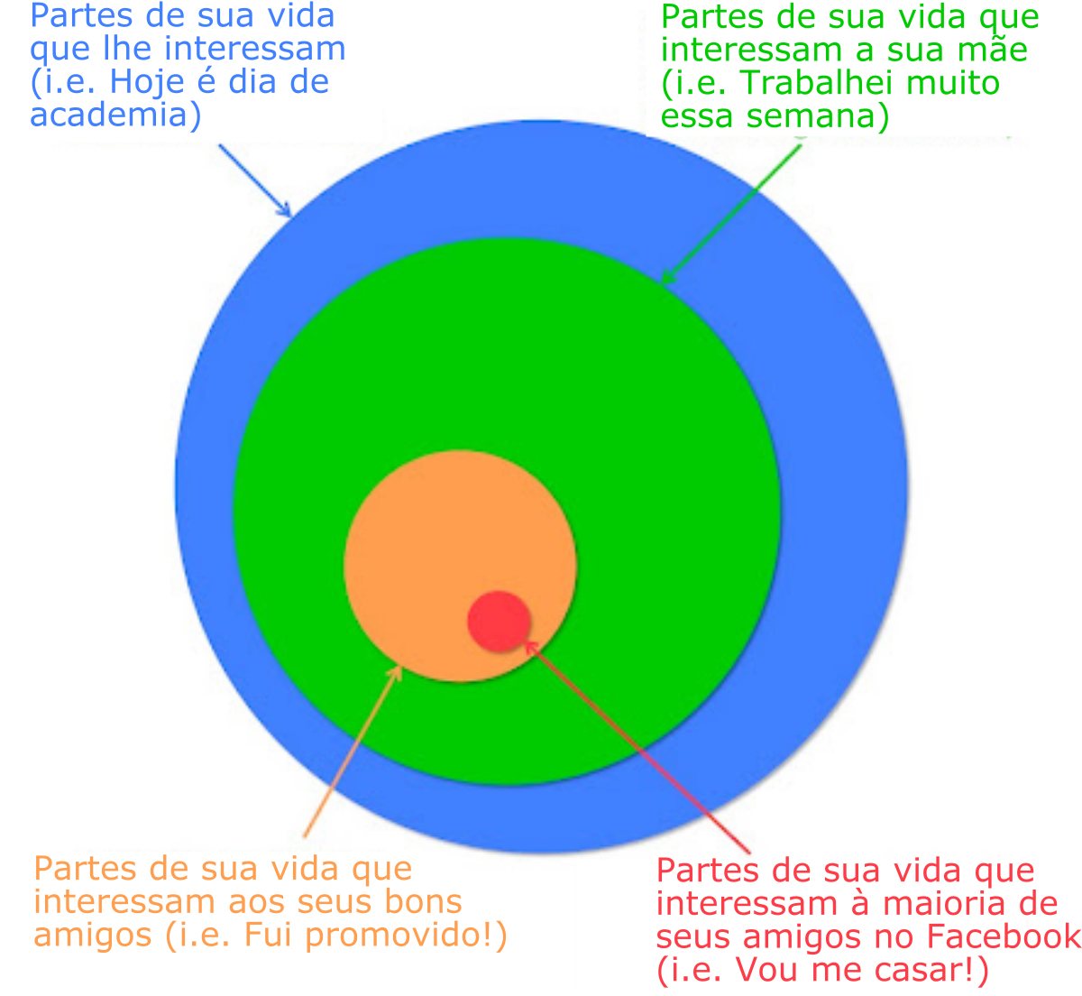 Mas vamos dar-lhe o benefício da dúvida, e considerar que você está simplesmente animado e precisa se gabar para alguém. Mesmo nesse caso, na vida real, só é normal alguém se gabar para seus amigos próximos, namorados e parentes – e é para isso que servem o email, o Whatsapp, uma conversa por telefone ou ao vivo. Seu momento de autossatisfação é profundamente irritante para pessoas de quem você não é próximo, e eles são a ampla maioria de pessoas que lerão sua postagem.