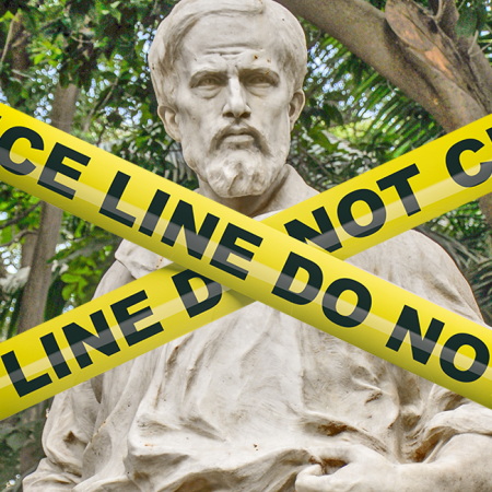 PM vira guarda-costas de estátua de estuprador