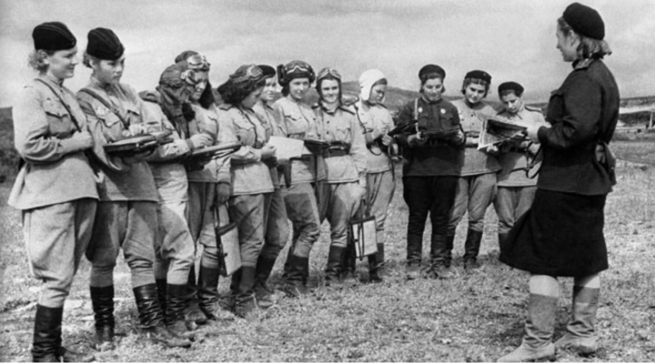 As mulheres soviéticas começaram a ser aceitas para o serviço militar a partir de 1939, mas normalmente ficavam em cargos de apoio, no correio ou como enfermeiras e médicas. Aproximadamente 70% dos feridos de guerra soviéticos foram tratados por mulheres. Ainda assim, muitas atuaram diretamente na frente de batalha. Várias por pedido direto a Stálin.